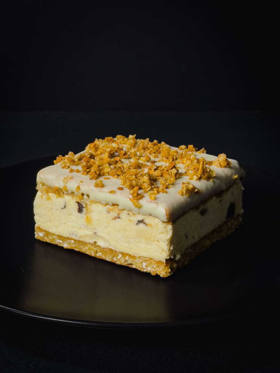 ANZAC biscuit blondie with spiced rum and raisin ice cream
